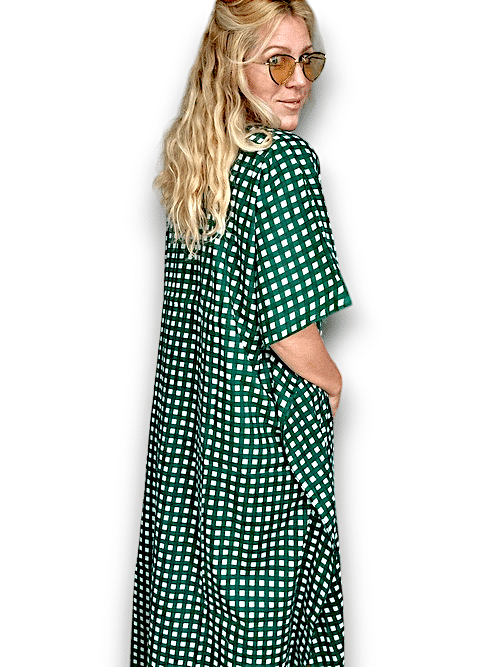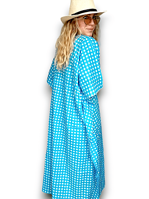 IDA IVY Resortwear-Kaftan-Check/Turquoise