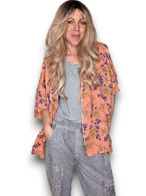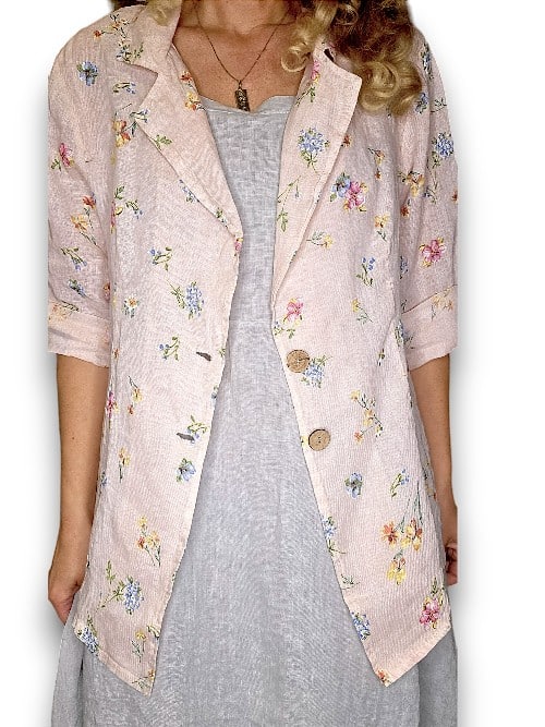 Coral Scarlett Rose Sequin Pkt Linen Jkt