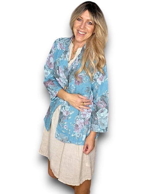 Light Turquoise Scarlett Rose Suit Linen Jkt