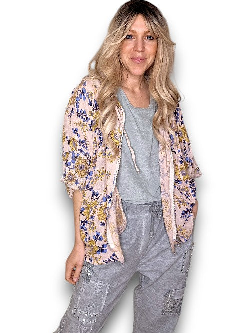 Hot Pink High Tea Sequin Pkt Linen Jkt