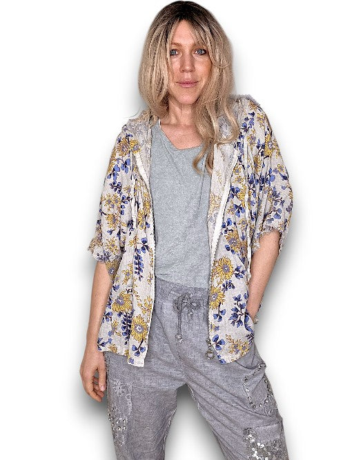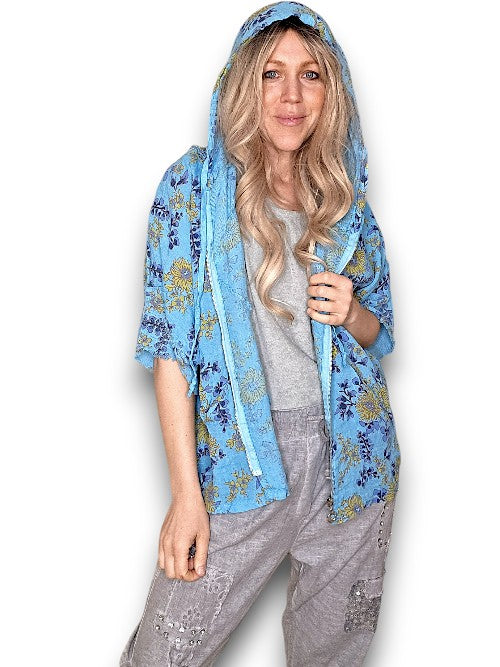Aqua Blue Retro Butterscotch Hoodie Jkt
