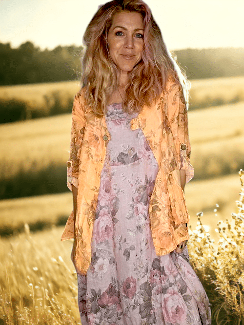 Neon Orange Scarlett Rose Suit Linen Jkt