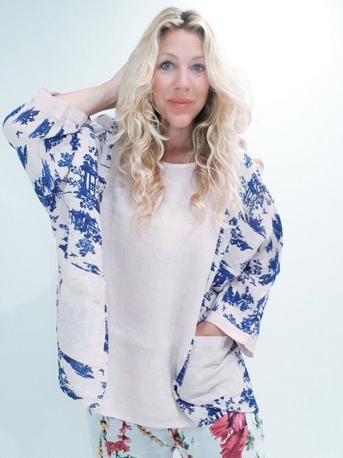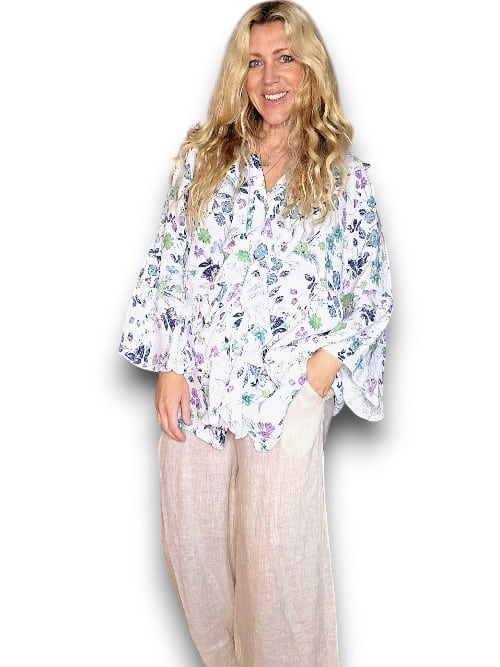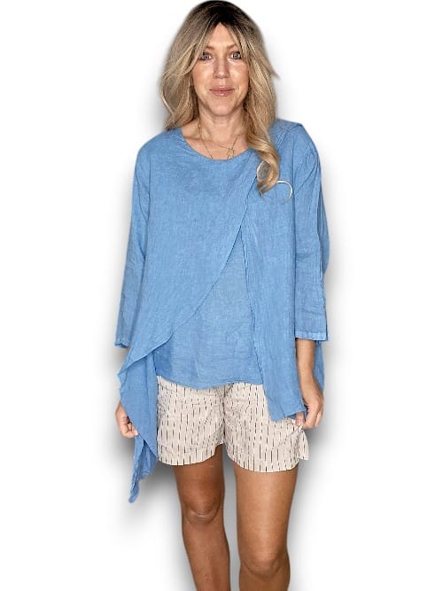 Baby Blue Wild Garden Madrid Linen Frill Tunic