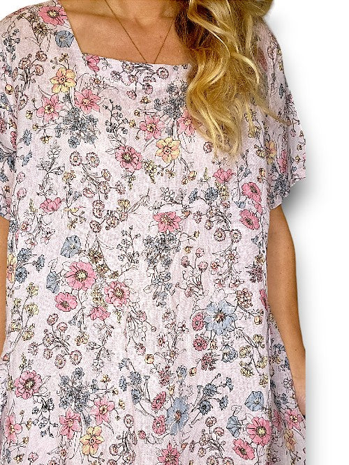 Baby Pink Bright Bloom V-Neck Maxi Dress with Buttons