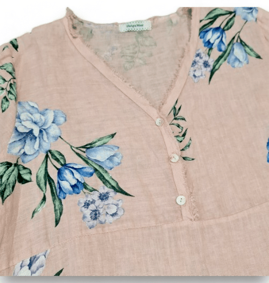 Baby Pink Adrian Bloom Button V-Neck Maxi Dress