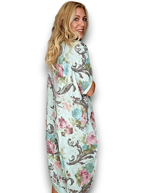 IDA IVY Resortwear-Kaftan-Check/Turquoise