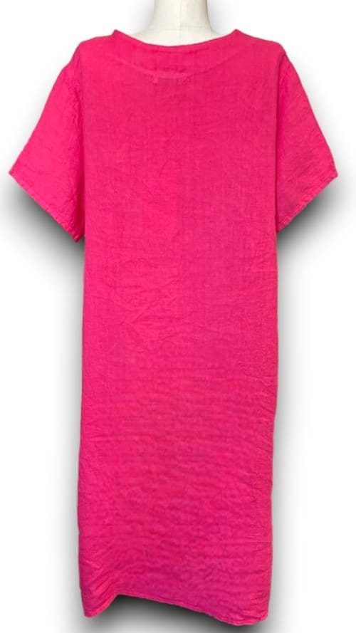 Hot Pink Plain V-Neck Maxi Dress with Buttons