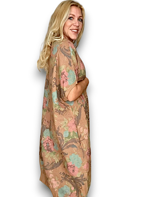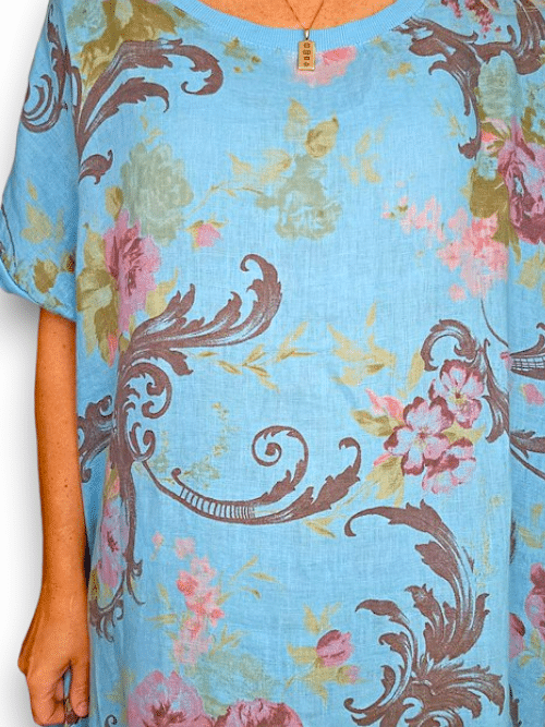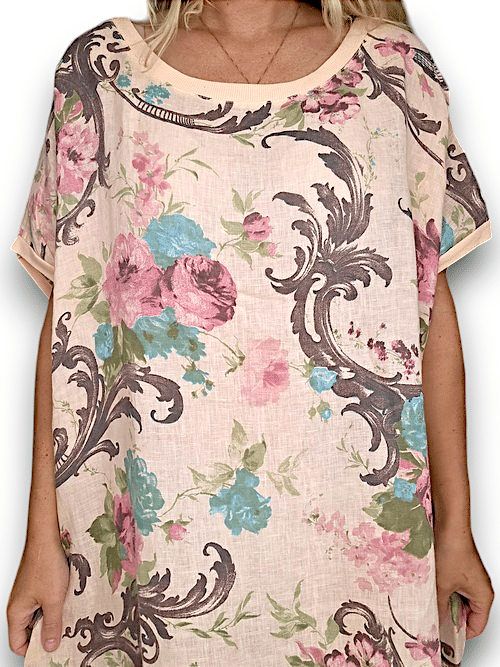 Mocha Wild Garden Madrid Linen Frill Tunic