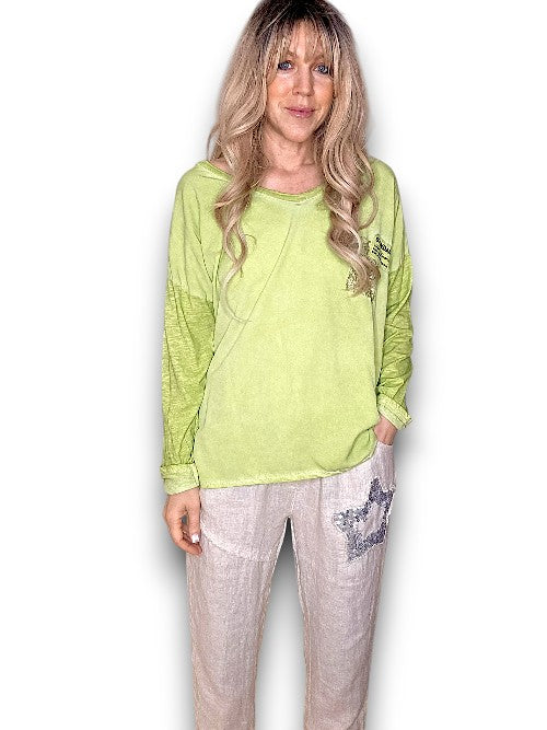 Lime Long Sleeve Sequin Patch Tee
