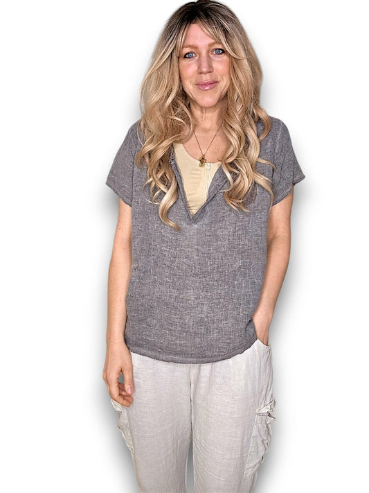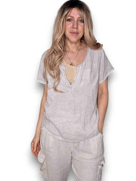 Natural Plain Linen Tee with Coconut Buttons