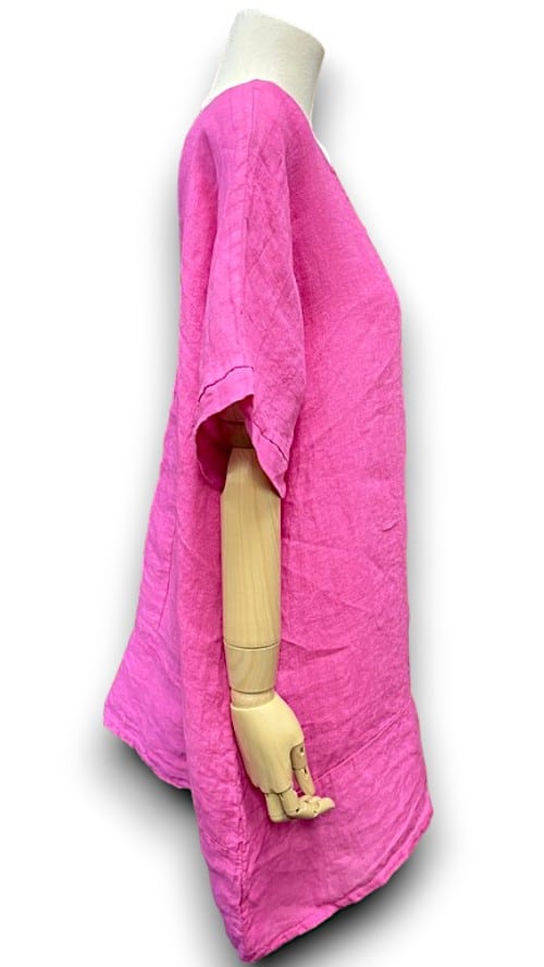 Hot Pink Plain Linen Tee with Coconut Buttons