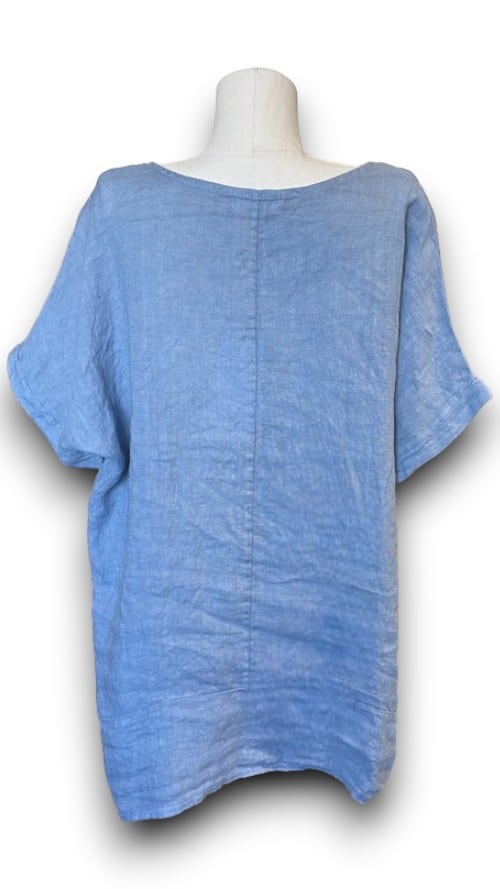 Petrol Plain Linen Tee with Coconut Buttons