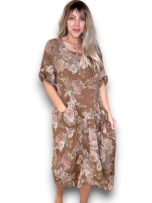 Coffee Scarlett Rose Button Sleeve Maxi Dress