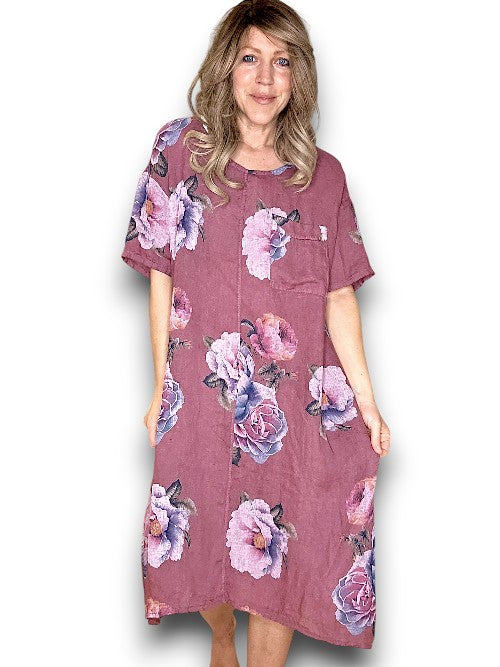 Plum Ombre Peony Easy Peasy T-Shape Dress
