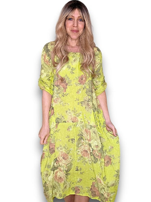 Neon Yellow Scarlett Rose Button Sleeve Maxi Dress