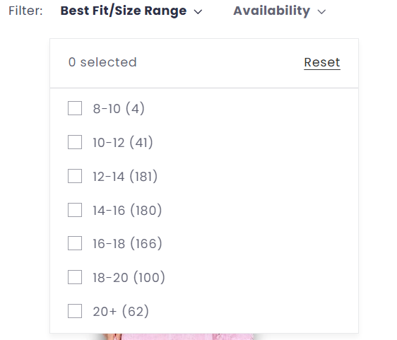 Look out for the new filter, Best Fit/ Size Range to help view options in your size range.
