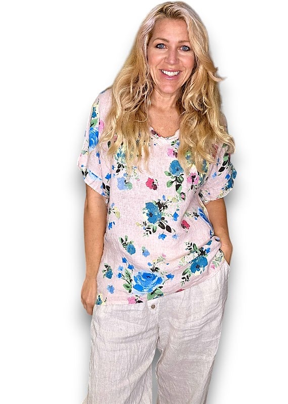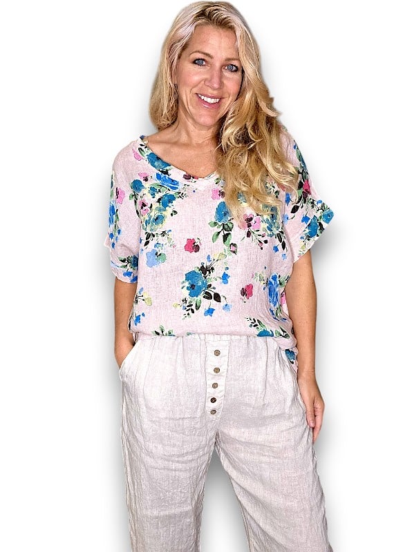 Soft Linen V-neck tee, with comfortable wider t-shirt sleeves
