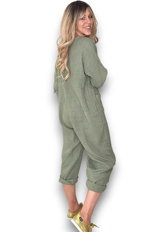 Forest Pearl Front Buttons Long Sl Jumpsuit