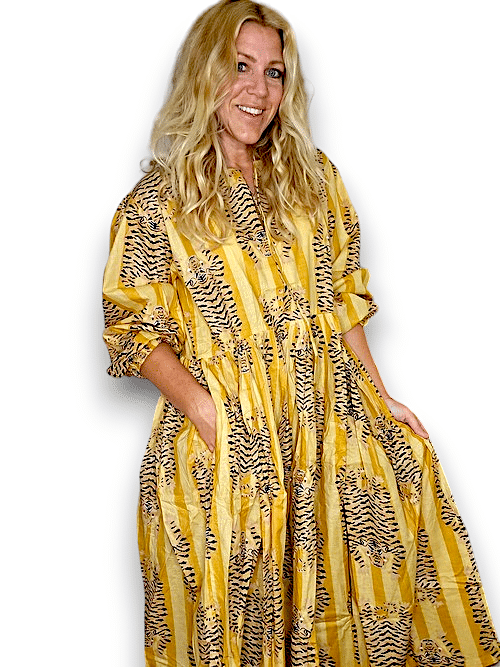IDA IVY Pouf Sl Dress/Tiger Stripe/Mustard/Yellow