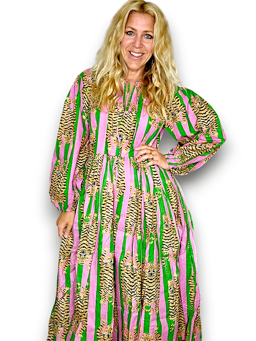 IDA IVY Pouf Sl Dress/Tiger Stripe/Pink/Green