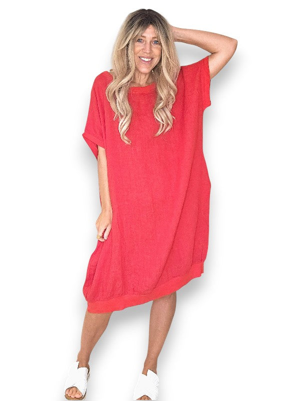 Red Plain Elastic Hem Dress