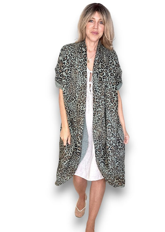 Sage Leopard Linen Cover Up