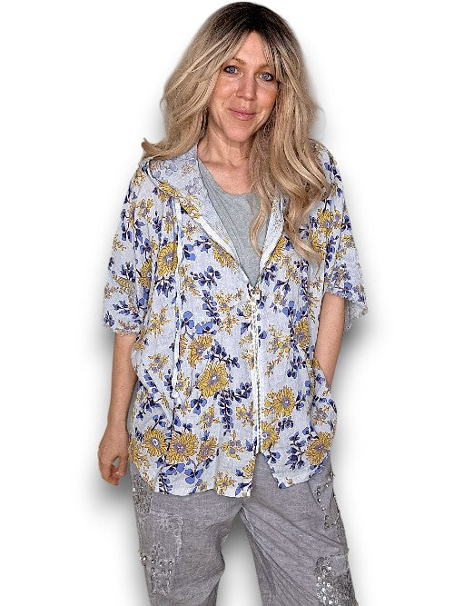 Free Sized. Composition: 100% Linen & Cotton ripped edge sleeve ends and shoulders. Made in Italy *Linen garments are hand dyed & printed. Imperfections may occur and is expected as part of the look*